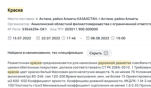 Уникальная функция, которая поможет не упустить ни один тендер. Находим закупки не только по названию лота, но также внутри технической документации.